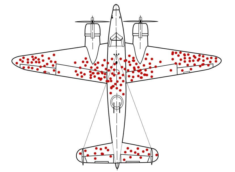 “Hayatta kalım yanılgısı” bahsi geçtiğinde verilen en yaygın örnek, savaşta muharebeden geri dönen savaş uçaklarının en çok vuruldukları noktalar üzerinden yapılan problemli analizdir.