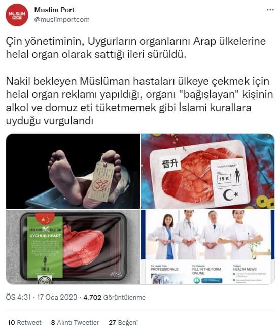 Çin yönetiminin Uygurların organlarını Arap ülkelerine sattığı iddiasıyla birlikte servis edilen (aslında temsilî olan; ancak, bazı sosyal medya kullanıcılarının ciddiye aldığı) görsellere göz atacak olursak…