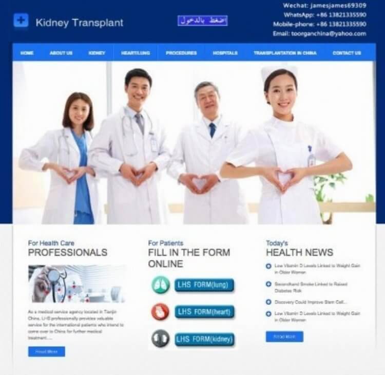 “Böbrek Nakli” başlıklı internet sitesi görseli ise Çin dışından gelen şahıslara organ nakli hizmeti verdiğini belirten Çin’in Tianjin kentindeki Lovehandy Healthcare Service adlı firmaya ait.