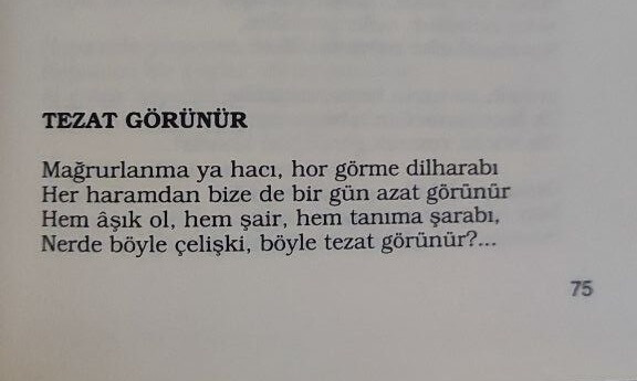 Yanlış şaire atfedilen şiirlerde bugünkü sıra “Hem aşık ol, hem şair, hem tanıma şarabı / Nerde böyle çelişki, böyle tezat görünür.”dizelerinde.