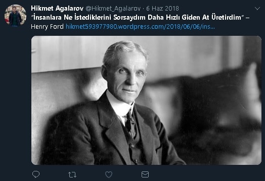 "Ne diyor Henry Ford, “İnsanlara ne istediklerini sorsaydım bana ‘daha hızlı atlar’ cevabını verirlerdi.”"