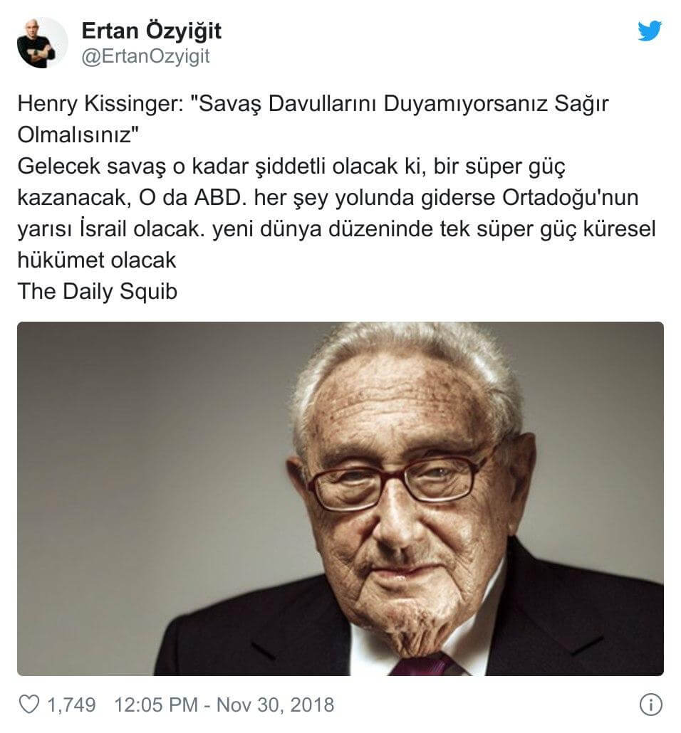 Dogruhaber.com.tr’deki “Henry Kissinger`in 3. Dünya Savaşı Fantezisi” başlıklı 22 Kasım 2017 tarihli yazısıyla Said Çınar: