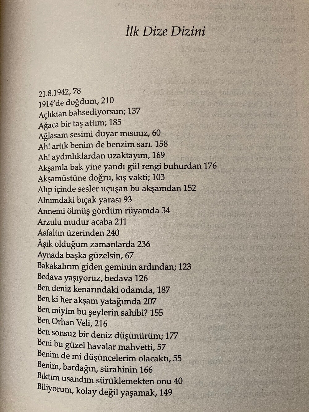 Şairin YKY baskılı derleme kitabında bulunan İlk Dize Dizini’nde de şiire dair herhangi bir iz olmadığına şahit oluyoruz.
