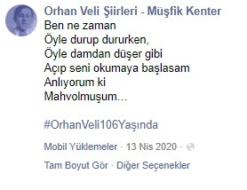 Orhan Veli imzasıyla sosyal medya platformlarında dolaşan şiirin kime ait olduğu henüz tespit edilebilmiş değil.