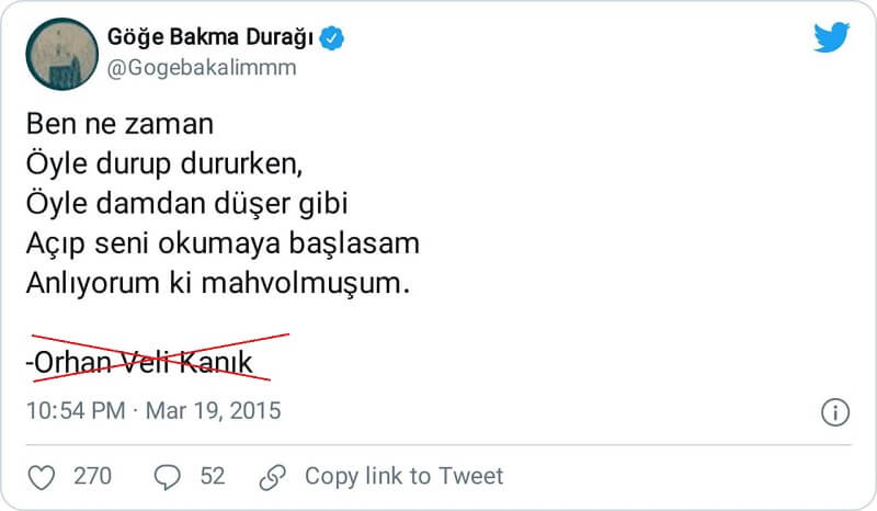 Ancak sanılanın aksine dizeler Orhan Veli’ye ait değil.
