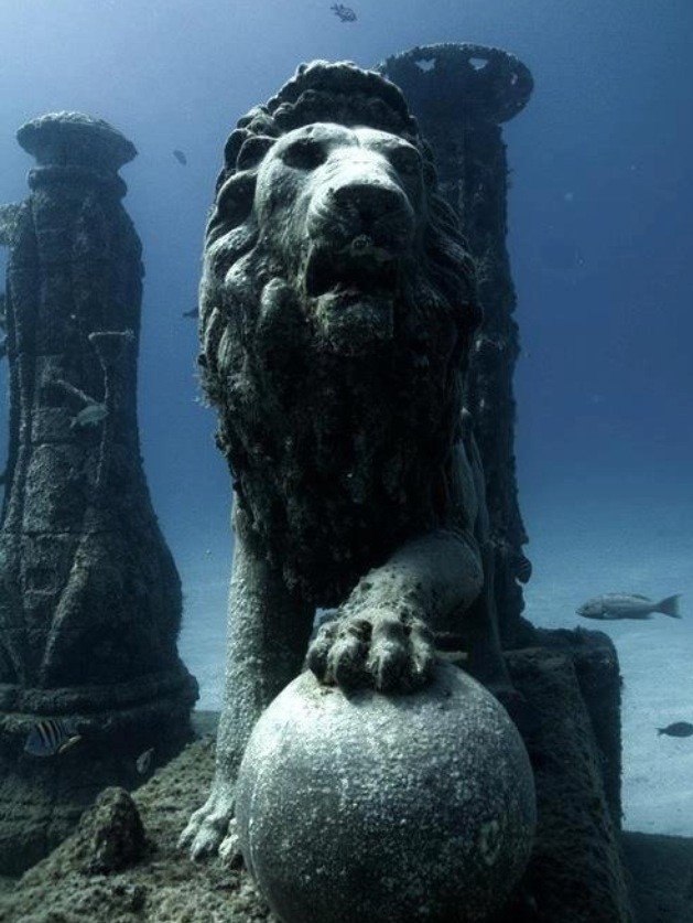 Yine Heracleion’a ait sanılan su altındaki aslan heykeli de ABD’nin Florida eyaletinde bulunan, dünyanın en büyük insan yapımı resifi Neptune Memorial Reef‘ten.