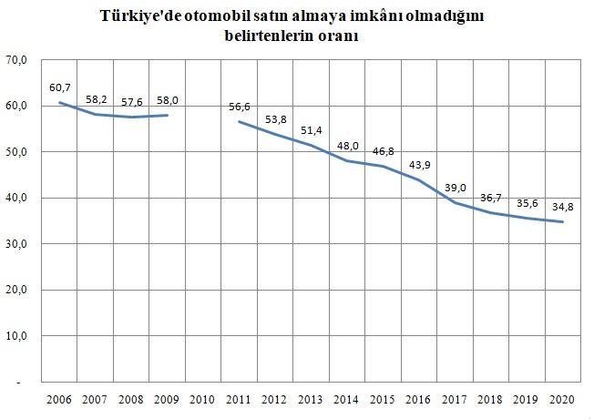 Otomobil almaya imkânı olmadığını belirtenlerin oranında ise kayda değer düşüşün yaşandığı görülüyor.