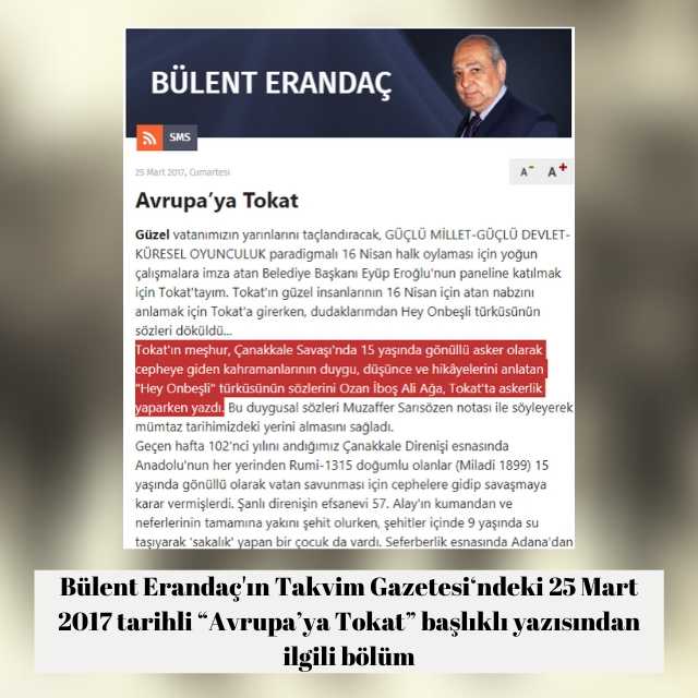 Takvim Gazetesi‘ndeki 25 Mart 2017 tarihli “Avrupa’ya Tokat” başlıklı yazısıyla Bülent Erandaç: