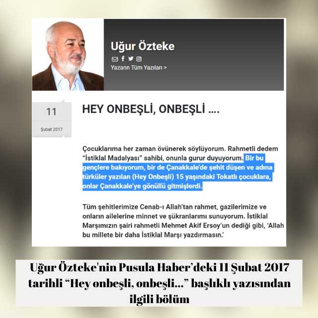 Pusula Haber’deki “Hey onbeşli, onbeşli…” başlıklı 11 Şubat 2017 tarihli yazısıyla Uğur Özteke: