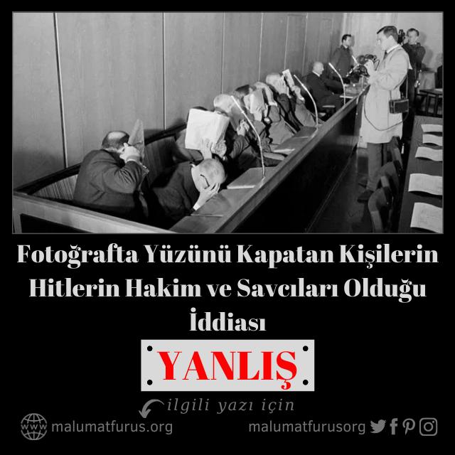 İddianın aksine yargılama esnasında fotoğrafları çekilirken yüzlerini kapayan şahıslar Hitler’in hakim ve savcıları değil, Nazi Almanyasının Schutzstaffel olarak bilinen, kısaca SS olarak adlandırılan özel askeri birlik görevlileridir.