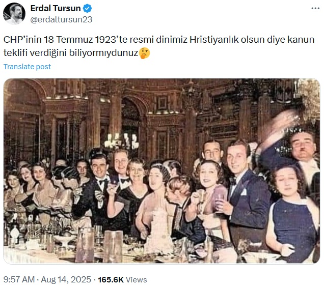 Erdal Tursun (@erdaltursun23): “CHP’inin 18 Temmuz 1923’te resmi dinimiz Hristiyanlık olsun diye kanun teklifi verdiğini biliyormıydunuz”