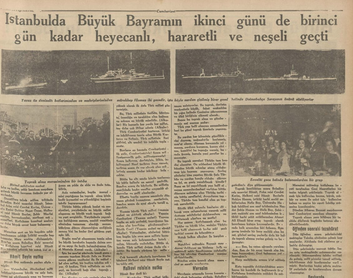 Teşkilât-ı Esasiye ’de devletin dini İslam dinidir yazısının kaldırılması hakkında konuşuluyormuş. Evvela Tevfik Rüştü dedi: “Ben kanaatimi millet kürsüsünden dahi haykırırım. Kimseden korkmam.” Ne olduğunu anlamadığımı söyledim. Bunu takiben Mahmut Esat Bey dedi ki: Türkler İslamiyet i kabul ettiklerinden bu halde kaldılar, İslamiyet terakkiye manidir. Buna da cevap verdim. Fethi Bey söze atıldı: Evet Türkler İslamiyet i kabul ettiklerinden böyle kaldılar dedi. İslam kaldıkça da bu halde kalmaya mahkûmdurlar. Şiddetle reddettim. Türkler İslam olmasaydı Bizans’ın esiri olurdu diye izahat verdim. Tarihi ve coğrafi vaziyetimizin amil olduğunu, eski fütuhat modasını takip etmekle de bu hale girdiğimizi, yerimizde kim olsa hemen aynı akıbete uğrayacağını, esasen bu gibi şeylerin tarihe gömüldüğünü, bugün başka bir dine veya dinsizliğe girmek imkânsızlığını ve bugün terakkiye mâni bir kafa kalmadığını izah ettim, tefrikaya ve tahakküme vasıta olmamalı. Bugün tarihi bir gün.
