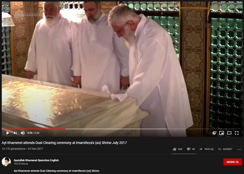 Fotoğraf, İran İslam Cumhuriyeti’nin dinî lideri Ayetullah Ali Hamaney’in 2017 yılında türbeye gerçekleştirdiği ziyaret esnasında düzenlenen toz alma töreni esnasında çekilmiş.