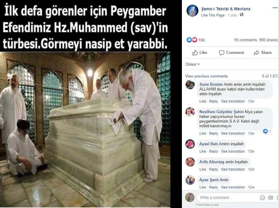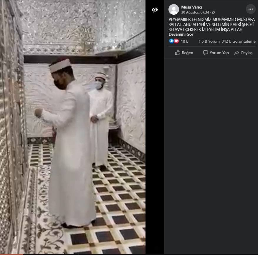 Sanal alemde “Hz.Peygamber Efendimizin Kabri Şerifi” başlığıyla yayınlanan birçok resim ve video, iddialarının aksine Hz. Muhammed’in kabrinin resmi yerine (Bursa’daki Osman Gazi Türbesi ve Konya’daki Mevlana Türbesi başta olmak üzere) farklı türbe ya da mezarlardan alınmış görselleri kullanmaktadır. Hz. Muhammed’in mezarının yer aldığı odanın içine ilişkin elimizde mevcut herhangi bir görüntü bulunmamaktadır.