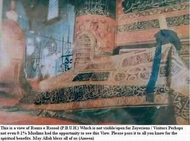 Bu (resim), ziyaretçilere açık olmayan Peygamberin kabrinin görüntüsüdür. Beşki de Müslümanların % 0,1’i bile bu manzarayı görme fırsatına erişememiştir. Lütfen tüm tanıdıklarınıza manevi faydalar/Allah rızası için iletiniz. Allah hepimizden razı olsun (Amin)
