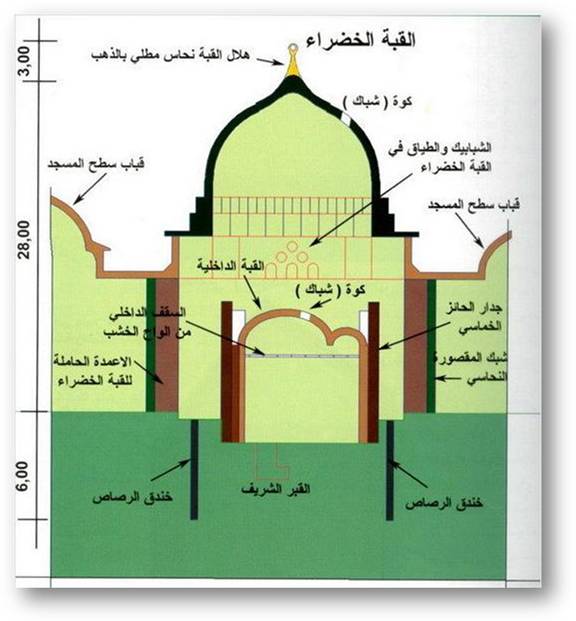 Hz. Muhammed’in kabrinin altında yer aldığı Yeşil Kubbe / Kubbetü’l-Hadrâ