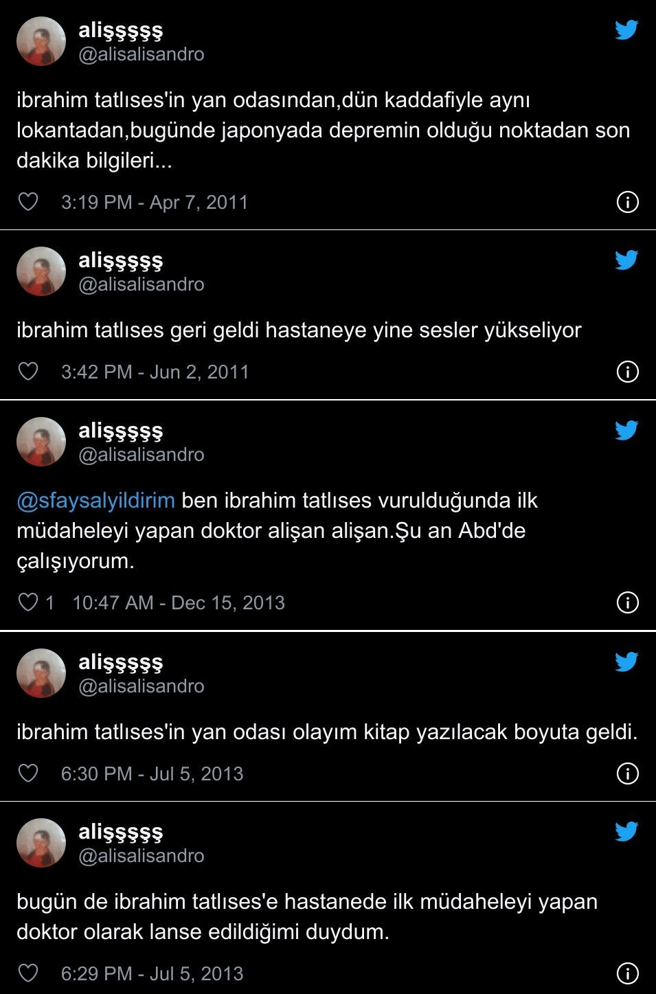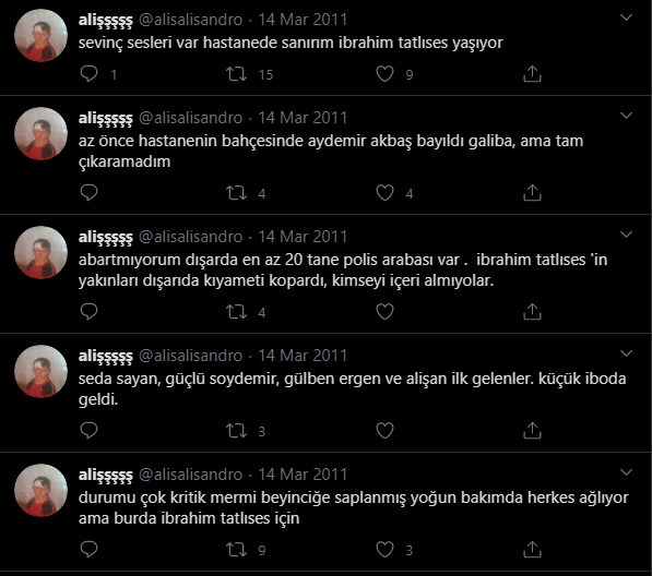 Twitter’da alişşşş adlı alisalisandro uzantılı sosyal medya kullanıcısı tarafından 14 Mart 2011 tarihinde İbrahim Tatlıses’in kaza geçirmesinin ardından ortaya atılan ve sosyal medyada dikkat çeken iddia, şu paylaşım ile şekillenmeye başladı: