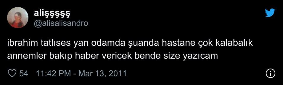 “ibrahim tatlıses yan odamda şuanda hastane çok kalabalık annemler bakıp haber vericek bende size yazıcam”