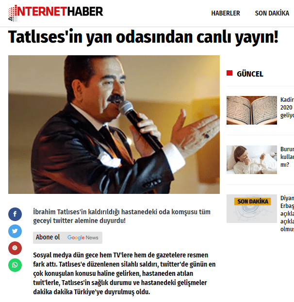 İbrahim Tatlıses’in hastanede yan odasında bulunduğunu dile getiren profilin dikkat çeken anbean yaptığı paylaşımlar, bazı haber sitelerince gerçek sanılarak haberleştirildi.