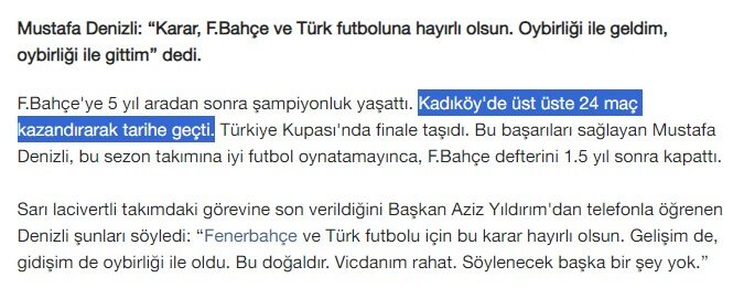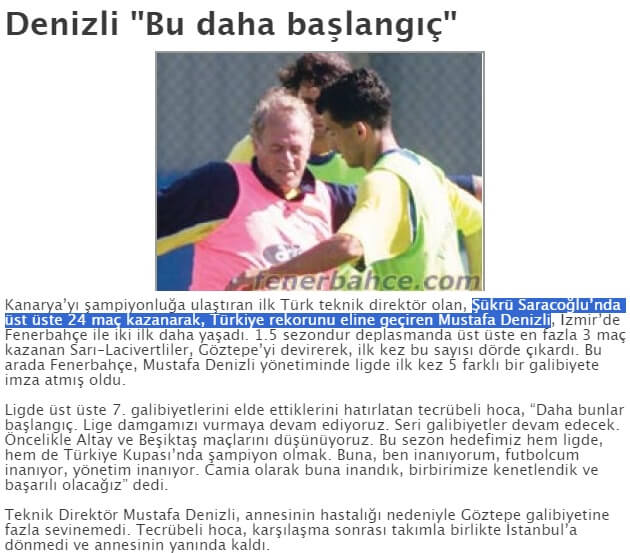 İç sahada üst üste kazanılan 24 maçın 23’ünde Fenerbahçe’nin teknik direktörlüğünü Mustafa Denizli üstlendi.