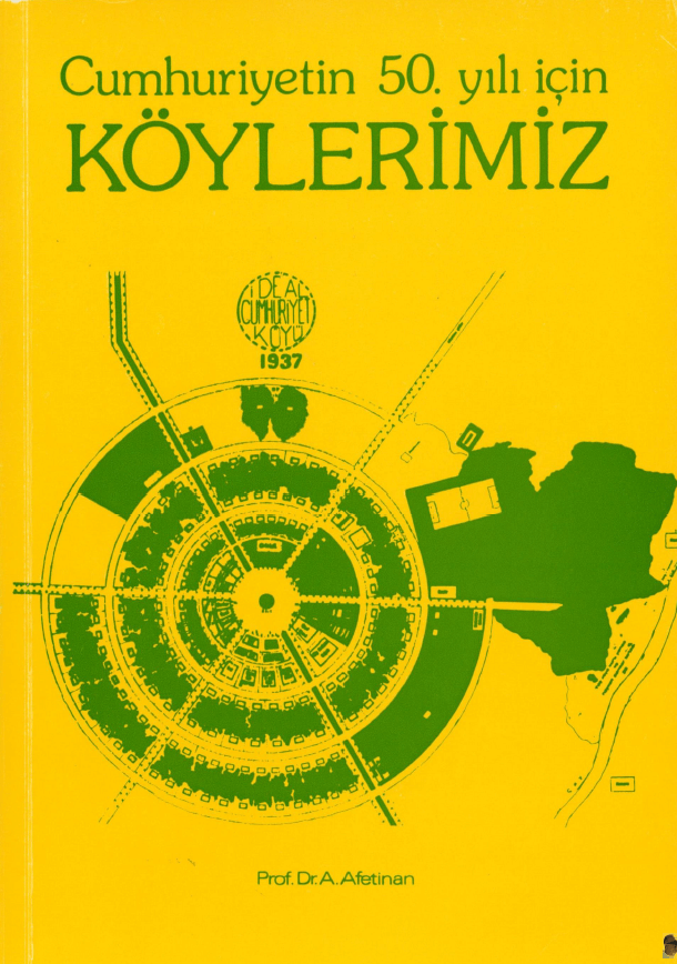 Türk Tarih Kurumu Basımevi’nden 1978 yılında çıkan “Cumhuriyetin Ellinci Yılı İçin Köylerimiz” adlı kitabın kapağında ideal köy projesi çizimine yer verilmiş.