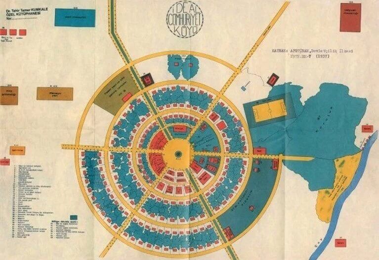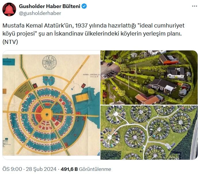 “Mustafa Kemal Atatürk’ün, 1937 yılında hazırlattığı “ideal cumhuriyet köyü projesi” şu an İskandinav ülkelerindeki köylerin yerleşim planı. (NTV)”