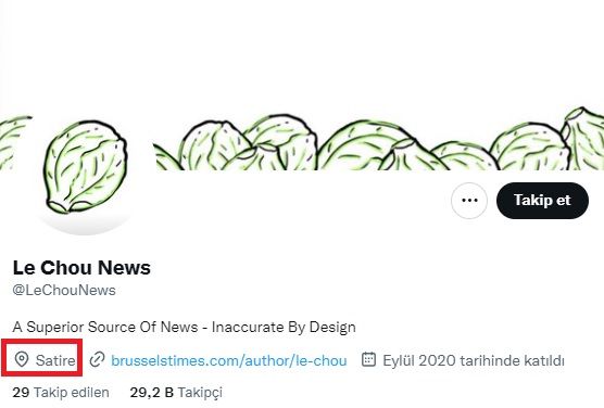 Adı geçen hesabın profilinde “satire” notunu düştüğü görülebiliyor: