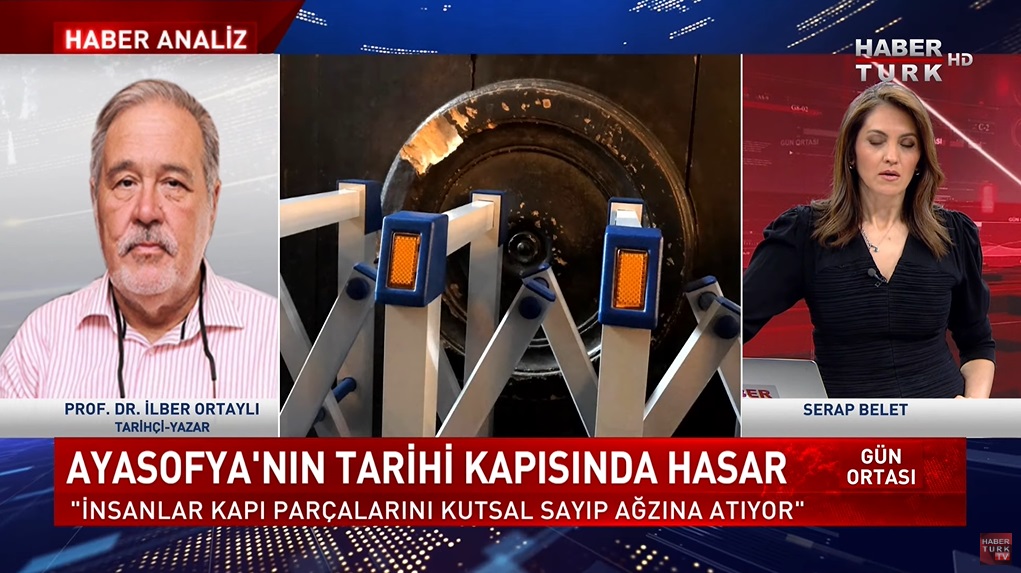 Ayasofya’nın kapısındaki hasara dair dile getirilen “insanlar kapı parçalarını kutsal sayıp ağızlarına atıyor” sözü Prof. Dr. İlber Ortaylı’ya ait değil. Bahse konu cümle, Ayasofya’nın imparatorluk kapısında oluşan hasar akabinde gazetecilere röportaj veren Sanat Tarihi Derneği Yönetim Kurulu Başkanı Şerif Yaşar’a ait. İlber Ortaylı’nın Habertürk TV’de “Gündem Ortası” adlı programda 20 Nisan 2022 günü canlı yayına katıldığı esnada resminin altına alt yazı olarak bu sözün kullanılması bu yanlış algıyı güçlendirmiş. Ortaylı, katıldığı yayında Ayasofya’nın kapısındaki hasara dair “kesinlikle bir şebeke işi” yorumunda bulunmuştu. Sunucu Serap Belet’in Ayasofya kapısını insanların kutsal addetmeleri nedeniyle kemirmiş olabileceği iddiasını dile getirmesi akabinde Ortaylı, bu iddianın gerçek dışı olduğunu belirtmişti.
