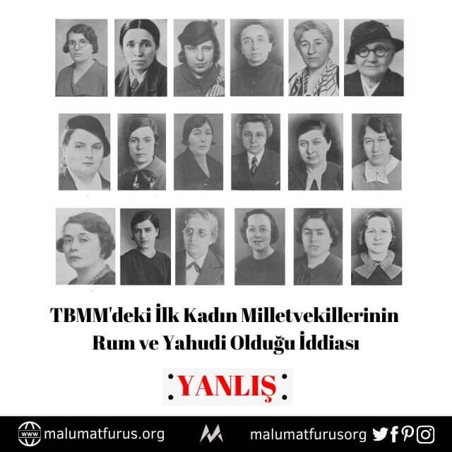 Türkiye Büyük Millet Meclisine Seçilen İlk 18 Kadın Milletvekilinin 15’inin Yahudi ve 3’ünün Rum Olduğu İddiası Doğru Değil