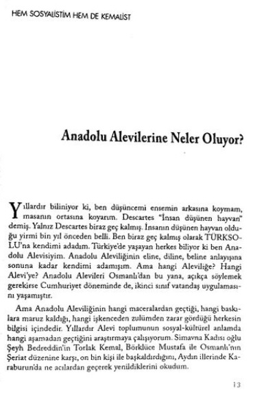 “Ben Alevi Türkmen’im. 29 harfi öğrendikten sonra Hz. Ali’yi öğrendim. Daha sonra Atatürk’ü öğrendim. Hz. Ali ve Atatürk fikirlerimin kaynağını oluşturdu. Ben Hz. Ali’nin, Atatürk’ün bedenine girdiğini ve fikirlerinin orada yaşadığını düşünüyorum.”