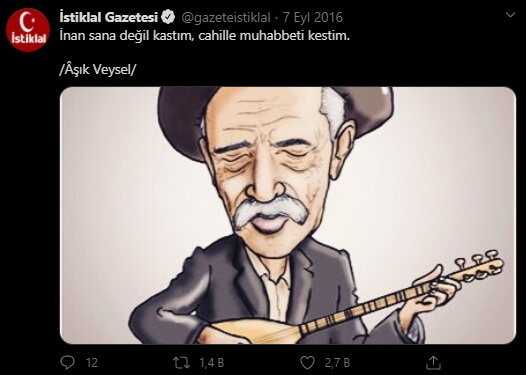 Bahse konu sözün birçok internet sitesi ve sosyal medya platformunda Âşık Veysel adıyla paylaşıldığını görüyoruz. Birçok internet sitesi, gazete ve köşe yazarının mezkur ifadeleri yanlışlıkla büyük halk ozanımıza atfettiği görülüyor.