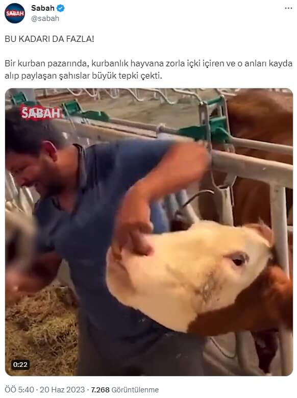 Sosyal medya platformlarında geçtiğimiz günlerde bir video kurban pazarında kurbanlık hayvana zorla içki içirildiği ve o anların kayda alınıp sosyal medyada paylaşıldığı iddiasıyla aktarıldı.