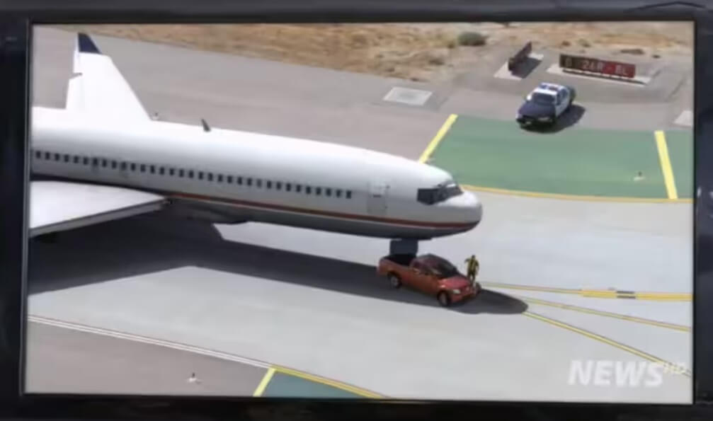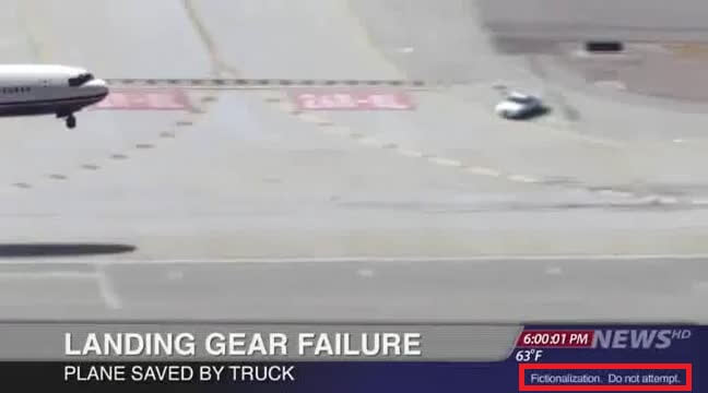 İniş takımında arıza yaşayan uçağın inişine yardım eden kamyonetin görüldüğü videonun gerçek bir hadiseden olmadığını geçmişte Snopes ve Factly gibi girişimler de aktarmıştı.