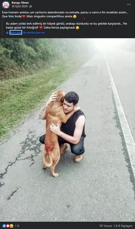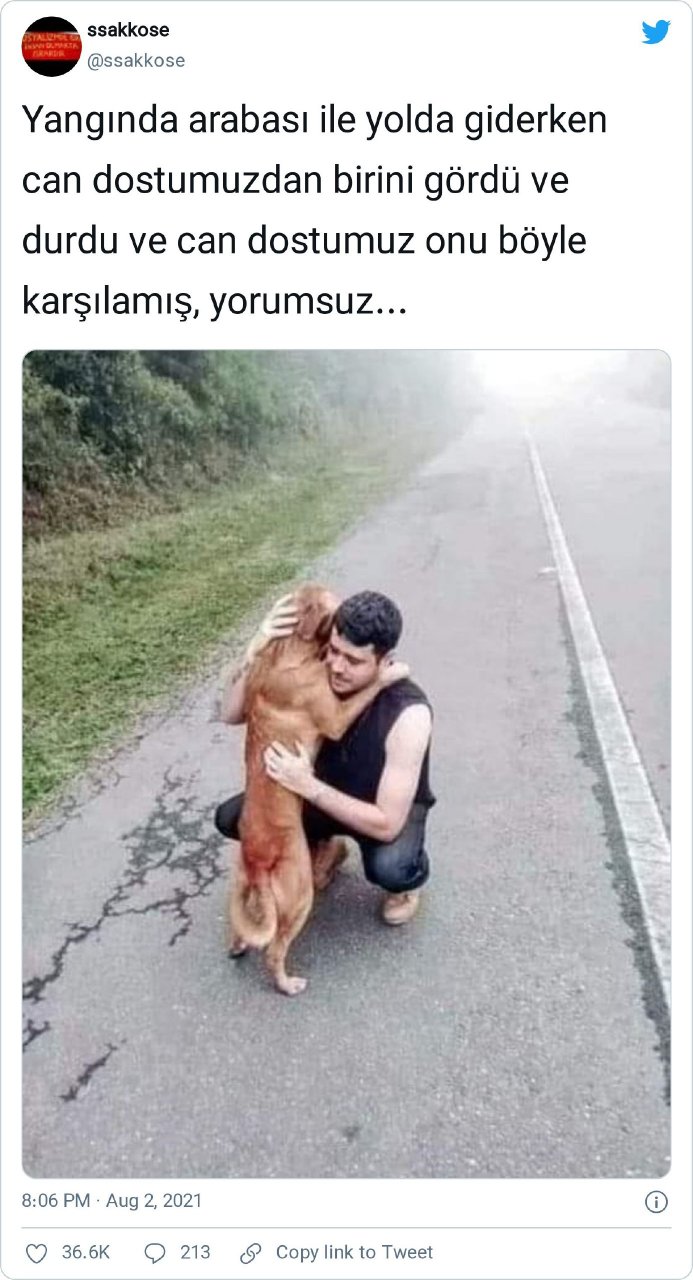 Herhangi bir yangınla ilişkili sunulmayan bahse konu görselin farklı dillerdeki paylaşımlarda “Bu adam yolda terk edilmiş bir köpek görmüş, arabayı durdurmuş ve böyle karşılanmış.” notuyla kullanıldığı anlaşılıyor.