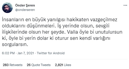 Bahsi geçen ifadeler 7 Ocak 2021 tarihinde Önder Şeren’in profilinde şöyle paylaşılmıştı: