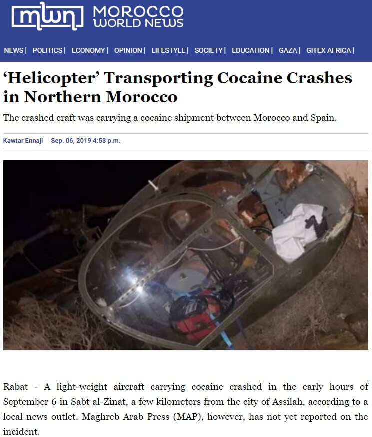 2019 yılı Eylül ayında Fas’ta kokain taşırken düşen helikopter enkazından görüntü de İran Cumhurbaşkanı Reisi’yi taşıyan helikoptere ait olduğu sanıldı.