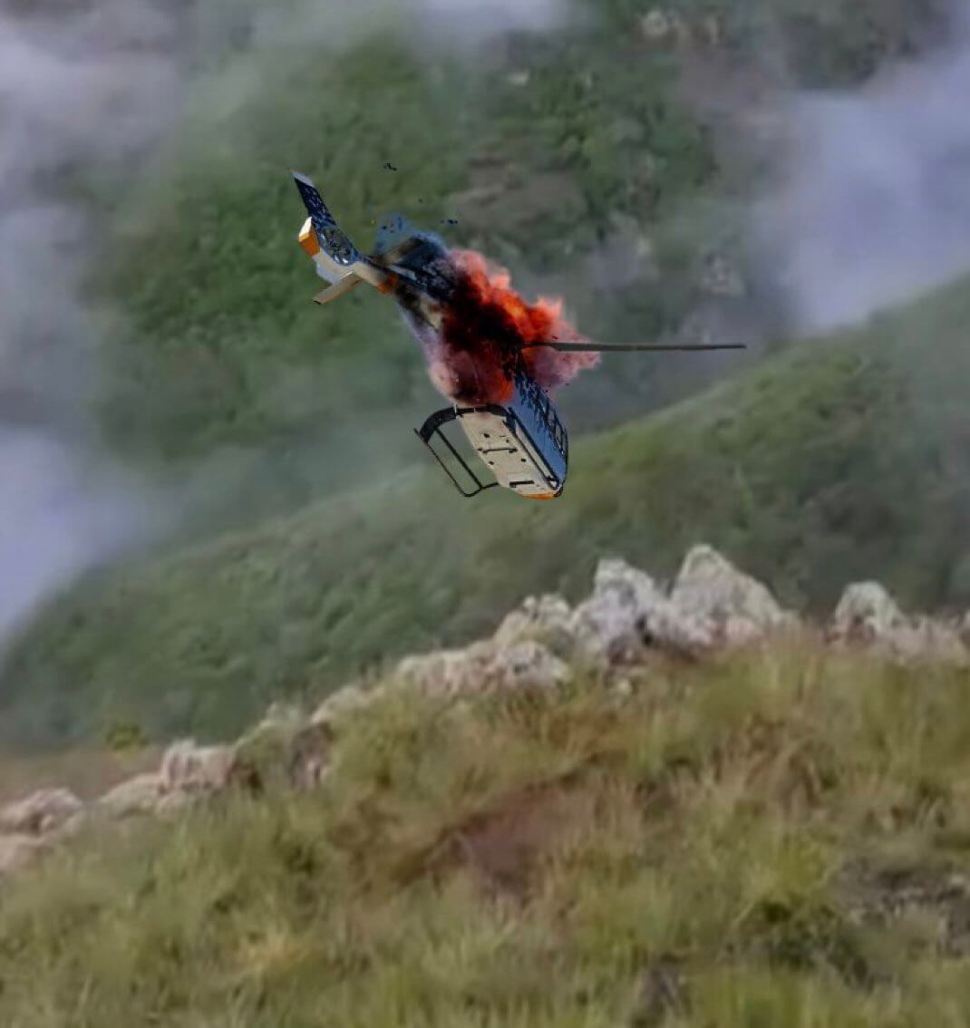2022 yılında Gürcistan’da iki yamaç paraşütçüsünü kurtarmaya çalışırken düşen kurtarma helikopterinin görüntüsü, ABD uydusunun Reisi’nin helikopterinin patlamasını ve olay yerini görüntülediği iddiasıyla kullanılmış.https://t.co/6vs4SlqNsz pic.twitter.com/O1PLybgzTV