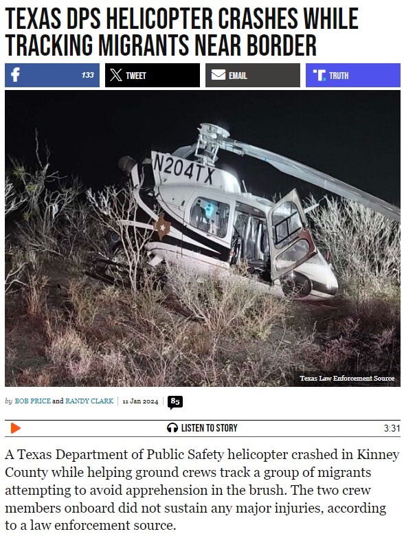 ABD’nin Teksas eyaletinde sınıra yakın göçmenleri takip ederken 11 Ocak 2024 günü düşen helikopter güncel ve İran’dan olduğu iddiasıyla kullanıldı.