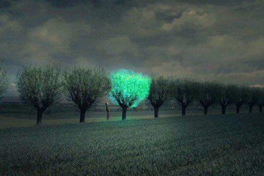 Hollandalı Tasarımcı Tarafından Üretilen Işık Saçan Ağaca Ait Sanılan Görseller Aslında Bir İllüstrasyon ya da Işık Kaynağı Tarafından Aydınlatma İçeriyor