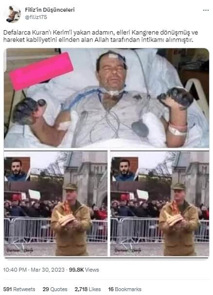 Kuran’ı Yakan Kişinin Ellerinin Kangren Olduğu İddiasıyla Paylaşılan İlintisiz Fotoğraf