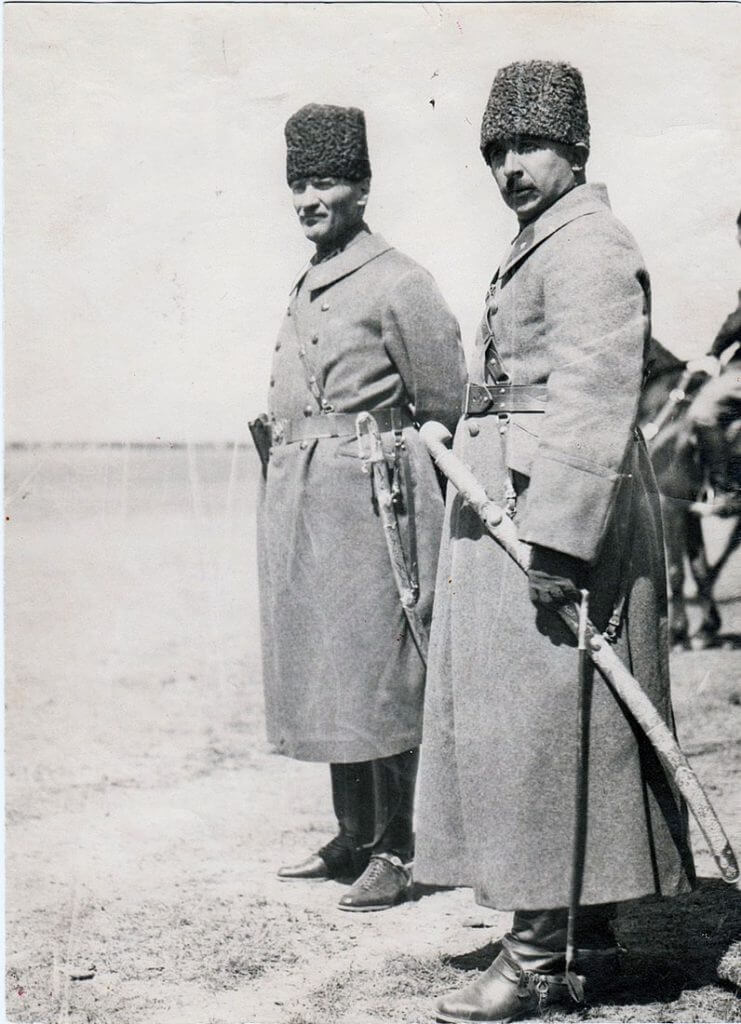 2. Cumhurbaşkanı İsmet İnönü’nün askerî üniforma ile arkası dönük eli belinde şekilde görüntülendiği iddiasıyla ya da imasıyla paylaşılan fotoğraf şöyle (İsmet İnönü’nün yanı sıra fotoğrafta görülen kişinin Mustafa Kemal Atatürk ya da Prusya Prensi Joachim olduğu da sanılmıştı):
