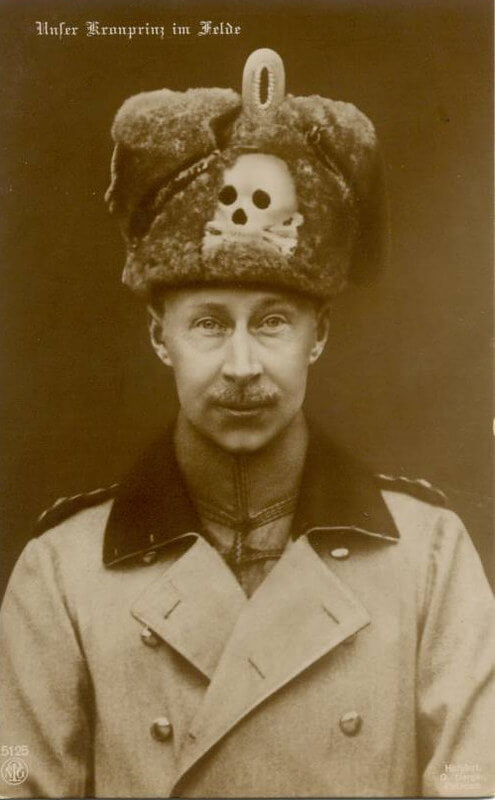 Alman veliaht prensin kürk başlığında kuru kafa sembolü bulunan Totenkopfhusare adlı Prusya alayı üniformasını giydiği görülen farklı birçok fotoğrafı mevcut.