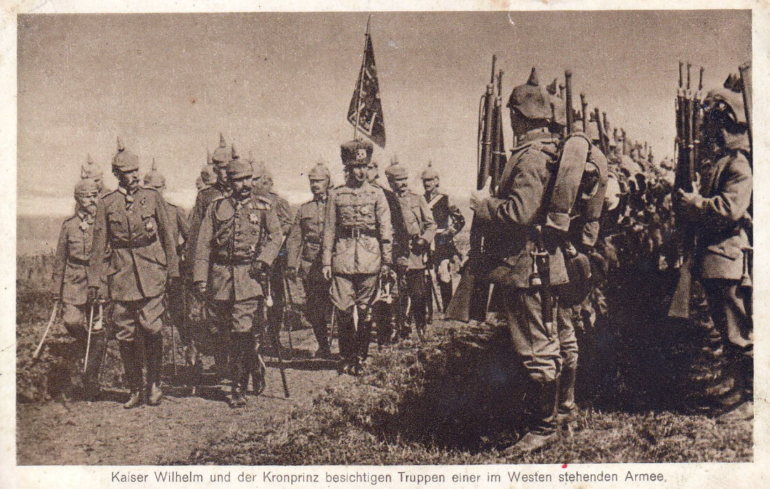 Bunlardan biri “Kayzer II. Wilhelm ve Veliaht Prens Wilhelm, Batı’da konuşlanmış bir ordunun birliklerini teftiş ediyor” (“Kaiser Wilhelm II. und Kronprinz Wilhelm besichtigen Truppen einer im Westen stehenden Armee“) notuyla kartpostal olarak kullanılmış.