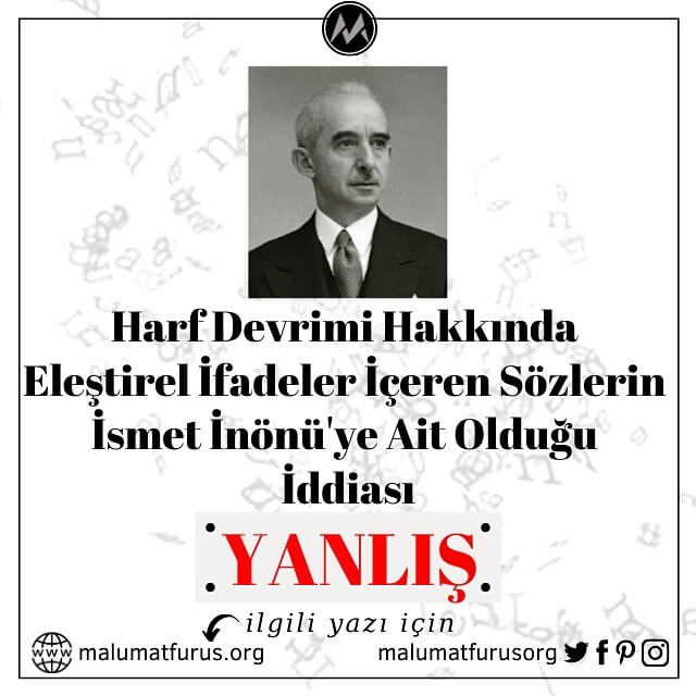 Harf Devrimi Hakkında Eleştirel İfadeler İçeren Sözlerin İsmet İnönü’ye Ait Olduğu İddiası Doğru Değil