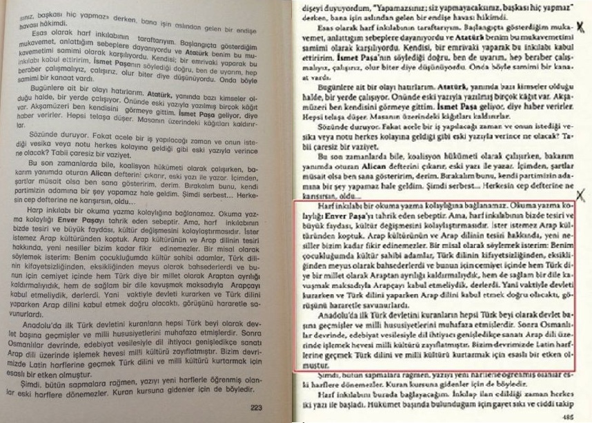İsmet İnönü’nün Hatıralar adlı kitabında Harf Devrimi hakkındaki görüşlerine yer verdiği paragraflar şöyledir: