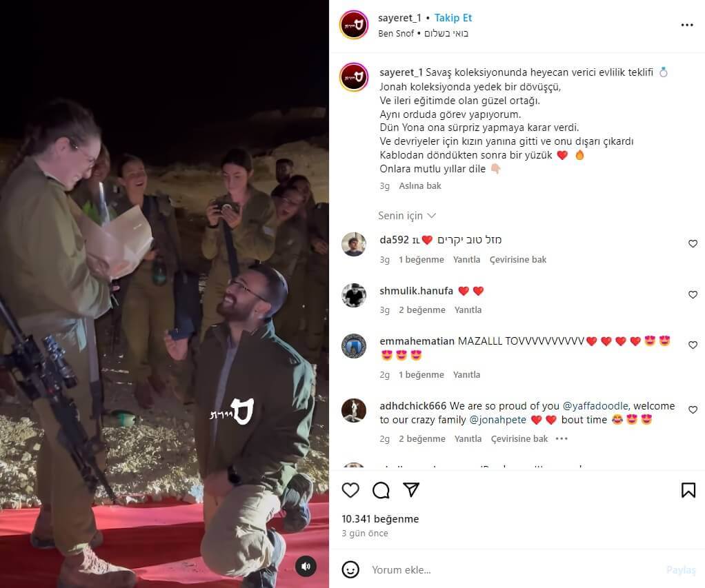 İsrail’in Gazze ablukası, bombardımanı ve kara operasyonu sürerken İsrail ordusunda görev yapan askerlerin evlilik tekliflerinden benzer görüntüler sosyal medyada ve haber sitelerinde paylaşılmıştı.