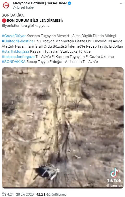 Misvak Caps (@misvakcaps): “Gazze’ye sızmaya çalışan İşgal güçlerinin militanlarına El Kassam Tugayları gece tarifesi uyguladı.”