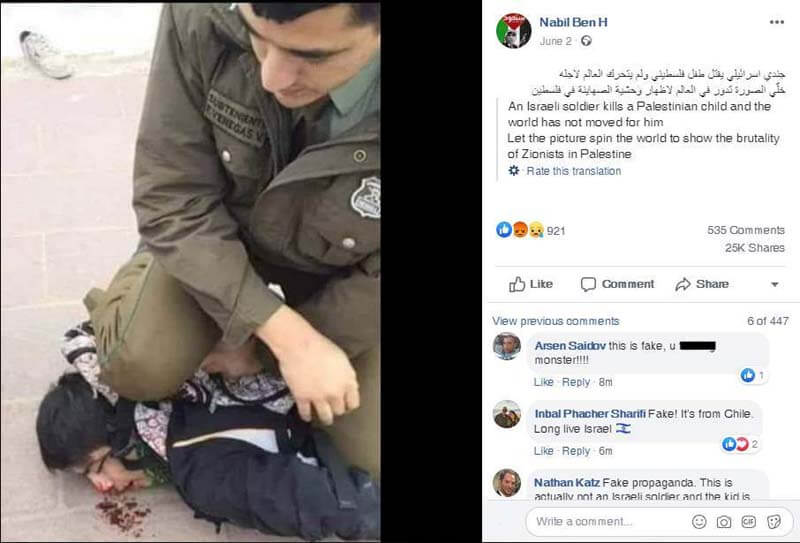 İsrail’den kolluk kuvvetleri tarafından Filistinlilere yönelik uygulanan şiddete ilişkin kayda değer sayıda görüntü mevcut olduğu hâlde, Şili’de çekilen fotoğrafı Filistin’den olduğu iddiasıyla kullanan bazı paylaşımlar şu şekilde: