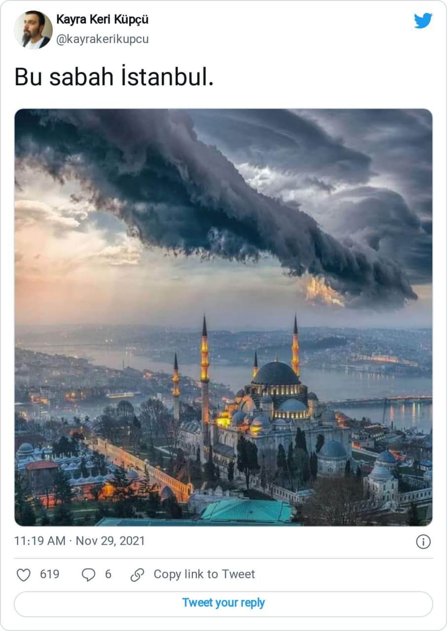 Fırtınalı bir İstanbul akşamına ait olduğu iddiasıyla paylaşılan Süleymaniye Camii ve Haliç manzarası aslında dijital düzenleme içeriyor.