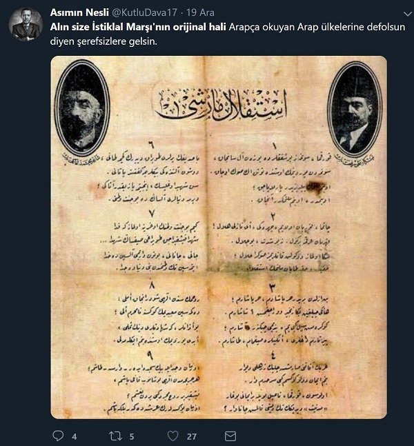 İstiklal Marşı’nın orijinalinin Arapça olduğunu sanan paylaşım